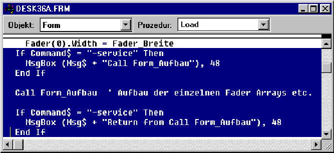 Nach jedem Abschnitt während der Initialisierung frage ich den Parameter ab und gebe dann eine MsgBox aus, in der angegeben wird, wie weit das Programm inzwischen fortgeschritten ist.