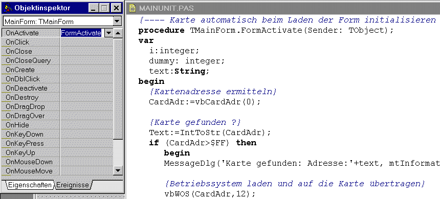 Da die Karte zu Programmbeginn initialisiert werden muß, empfiehlt es sich, dies gleich beim Laden der Form zu erledigen. Damit initialisieren Sie die Karte zur Laufzeit automatisch bei Programmstart. Natürlich können Sie die Initalisierung auch durch einen Button oder ein Menü aufrufbar machen, das haben wir z.B. auch bei unseren Demos getan - dann haben Sie jederzeit Zugriff auf diese Funktion.