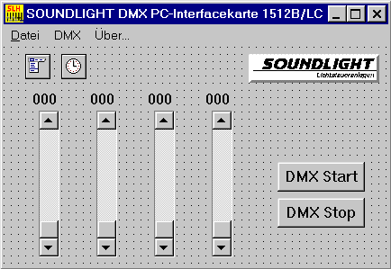 Sie haben eine SOUNDLIGHT DMX PC-Karte 1512B oder wollen sich eine zulegen? Gut, dann sollen Sie sie ja auch benutzen können. Die Karte ist wahrlich universell: sie läßt sich sehr einfach mit allen Sprachen - Assembler, DOS BASIC, PASCAL, C, den visuellen Programmieroberflächen Visual Basic, DELPHI und Visual C++ bedienen. Am meisten Spaß machen natürlich die visuellen Oberflächen unter Windows, weil Sie sich um Grafik fast nicht kümmern müssen: die ist schon komplett vorhanden und eine ganze Menge Systemfunktionalität gibt's auch fertig- man kann sich also voll und ganz auf die eigentliche Aufgabe, die Lichtsteuerung, konzentrieren.