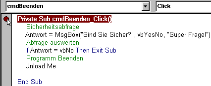 Gehen Sie wieder in den Entwurfsmodus (Programm stoppen) und fügen Sie folgenden Code in "Private Sub cmdBeenden_Click()" ein: