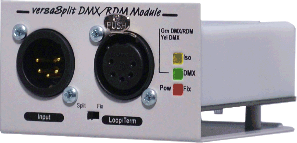 Though the DMX protocol supports 512 control channels, the line load is limited to a maximum of 32 connected devices (to be safe, use about 24 devices per link). This is due to the limited current source/sink capabilites of the interface driver chips, and refers to the EIA/TIA 485 standard, upon which the DMX standard is based (DMX512 is the "Communication Language", while RS-485 is the "Hardware Description" of the control bus). When more than 32 devices are to be connected to a single DMX controller, a DMX spitter must be introduced to generate more branches- each can then be loaded with a maximum of up to 32 devices. Another benefit of introducing a DMX splitter is the optical isolation of data input and data output. This provides electrical isolation between input and output adding additional system safety and reliability. Compromising signal quality on one branch will not affect other branches. Please note, that many low cost DMX splitters available on the market do not provide electrical isolation nor port protection. |
