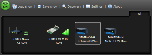 DMX RDM LINK The radio link can easily be administered using the free software package "SUPER NOVA". All RDM RDM devices detected within the radio network are illustrated on a graphical screen. Aufgenommen mit JESE GET/SET RDM CONTROLLER |