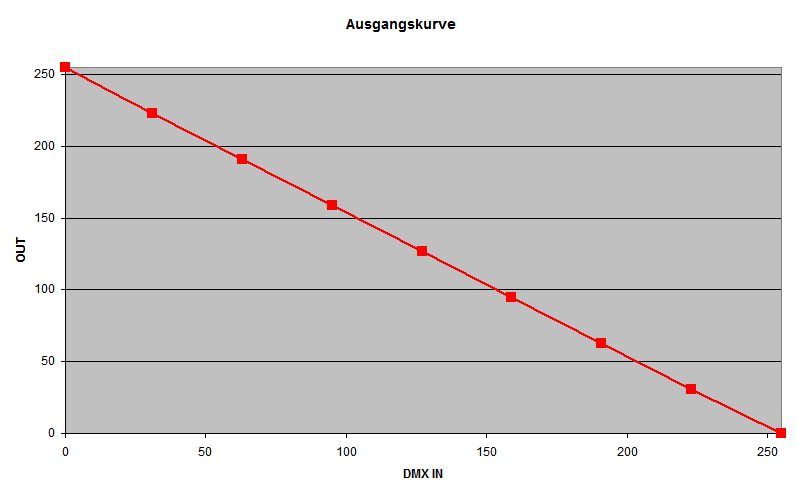 Es handelt sich also um eine abwärts laufende Intensitätskurve; de facto wird hiermit der Regelweg des Faders invertiert.