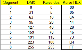 Um diesen Verlauf einzuspeichern, schreiben Sie also die 4 Konfigurations-Bytes (wie oben) und dann die 9 Kurven-Bytes per SET-Befehl.