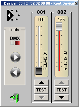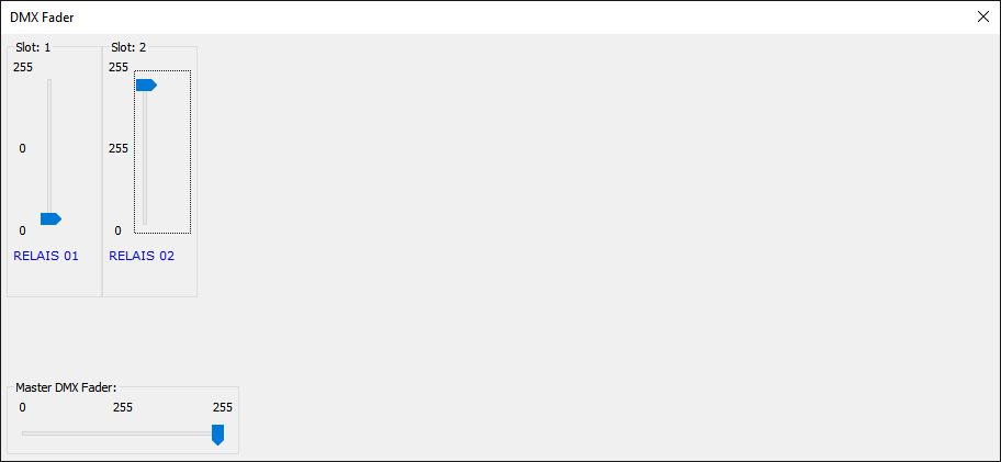 - Relay 2 has now been set to 0.4s pulse time. Check using the DMX fader. As soon as the pulse time has elapsed,