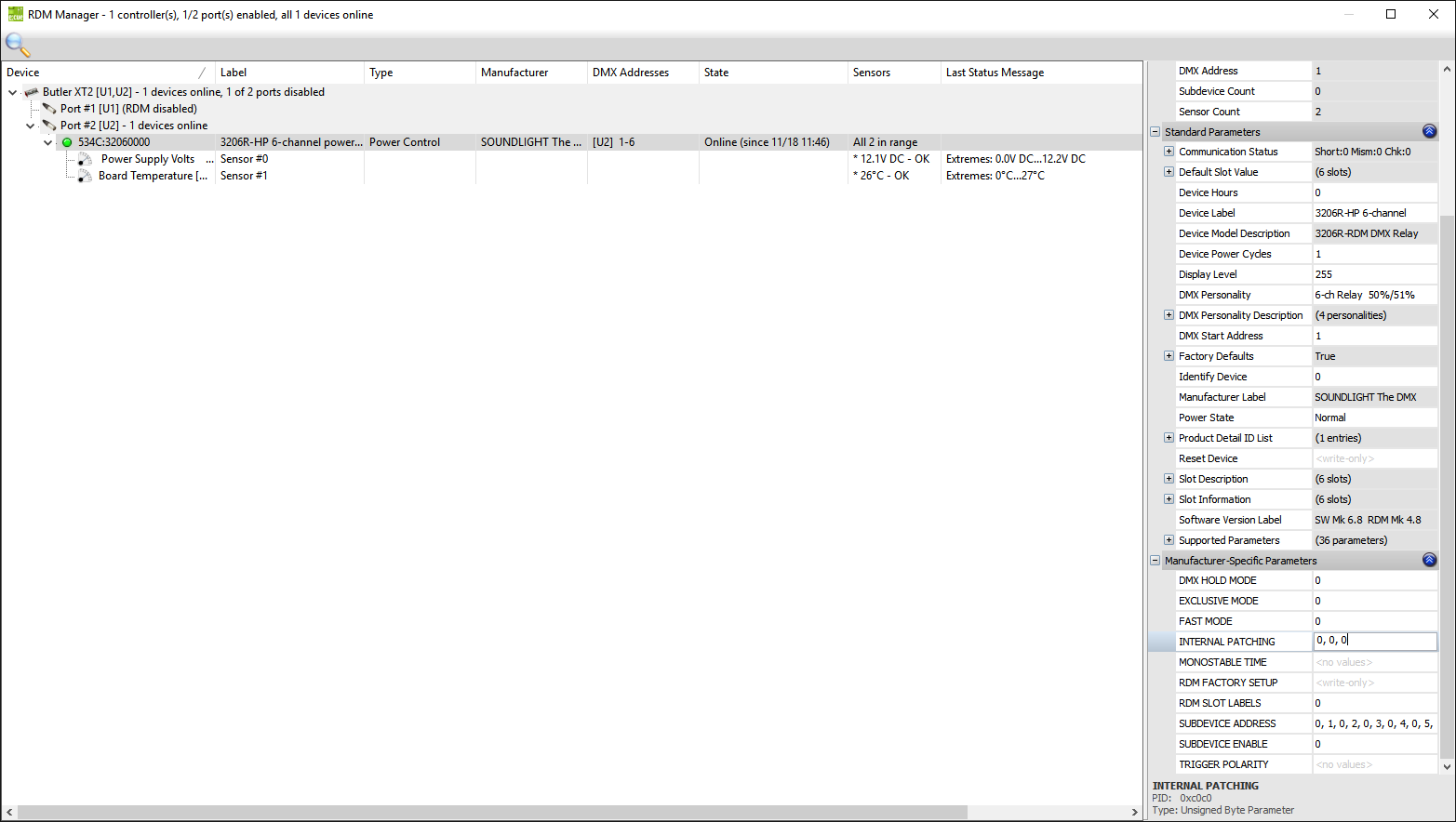 Relaismodule werden im Standardmodus (eine Startdadresse und ein Block von nachfolgenden Adressen für jedes Relais) ausgeliefert. Die Umstellung auf Sub-Device-Modus ist nicht erforderlich, wenn eine Adresszuweisung durch das interne Patching erfolgt. In diesem Fall bleibt das Modul als Block erhalten, die Rangierung kann innerhalb der verfügbaren Adressen (Startadresse bis Startadresse+5) erfolgen. Das Patching verwendet herstellerspezifische RDM Kommandos (CMSC). Bitte beachten Sie, dass nicht alle RDM-Controller diese Option unterstützen. |