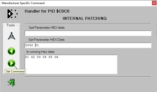 Enter these data as data to be sent and issue a SET command. Repeat this for relay 3: 000302 and for relay 4: 000402 - both relays will then be driven from data slot 2, which is startaddress plus 1. We do not need to set relays 5 and 6 since there are no changes. |